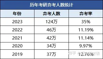 其實每年考研的棄考率都在10%左右,只有2023年受到疫情影響真正參加這考試的人數不足350萬,棄考率高達35%,而2024年考研棄考率是呈下降趨勢的。
