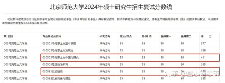 今年部分院校的文科類專業分數都非常高,如北京師范大學的馬克思主義中國化研究專業,今年復試分數線暴漲到411分。
